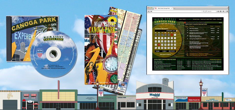 Main Street Canoga Park: Marketing materials, website and collaterals, 2001 - 2010.